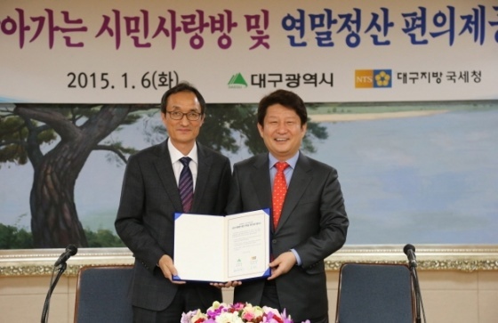 ÇÑÆí, ´ë±¸½Ã´Â Á¤ºÎ3.0 Á¤Ã¥ ½ÇõÀ» À§ÇÑ °úÁ¦·Î Áö¹æÁ¤ºÎ¿Í Áß¾ÓºÎó Çù¾÷À» ÅëÇØ ½Ã¹Îµé¿¡°Ô Æø³ÐÀº ¼ºñ½º¸¦ Á¦°øÇϰíÀÚ Áö³ 1¿ù 6ÀÏ ´ë±¸Áö¹æ±¹¼¼Ã»°ú ³³¼¼ÀÚ ÆíÀǸ¦ À§ÇÑ MOU¸¦ ü°áÇϰí, ÇöÀç ´ë±¸Áö¹æ±¹¼¼Ã»¿¡¼ ½ÃÇàÇϰí ÀÖ´Â ‘¼¼±Ý¹®Á¦ ÇöÀå¼ÒÅëÀÇ ³¯’ »ó´ã¹ÝÀ» ´ë±¸½ÃÀÇ ‘ã¾Æ°¡´Â ½Ã¹Î»ç¶û¹æ’°ú ¿¬°è ¿î¿µÅ°·Î ÇÔÀ¸·Î½á ±¹¼¼ ºÐ¾ß ½Ã¹ÎºÒÆí ÇØ¼Ò¿Í ÆíÀÇ Á¦°ø µîÀ¸·Î ÆÄ±ÞÈ¿°ú°¡ Ŭ °ÍÀ¸·Î ¿¹»óµÈ´Ù.