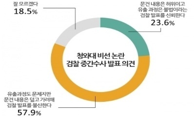¿©·ÐÁ¶»ç Àü¹®±â°ü ¸ð³ë¸®¼Ä¡´Â 1¿ù 14~15ÀÏ Àü±¹ ¼ºÀγ²³à 1,000¸í(À¯È¿Ç¥º»)À» ´ë»óÀ¸·Î ‘û¿Í´ë ºñ¼± ½Ç¼¼ ³í¶õ°ú °ü·ÃÇÑ °ËÂûÀÇ Áß°£ ¼ö»ç °á°ú ¹ßÇ¥¿¡ ´ëÇØ ¾î¶»°Ô »ý°¢ÇÏ´ÂÁö’¸¦ ¹°¾ú´Ù. ±× °á°ú 57.9%°¡ ‘À¯Ãâ°úÁ¤µµ ¹®Á¦Áö¸¸ ¹®°Ç ³»¿ëÀº µ¤°í °¡·ÁÇØ °ËÂû ¹ßÇ¥¸¦ ºÒ½ÅÇÑ´Ù’°í ´äÇß´Ù. 23.6%´Â ‘¹®°Ç ³»¿ëµµ ÇãÀ§À̰í À¯Ãâ °úÁ¤Àº ºÒ¹ýÀ̶ó´Â °ËÂû ¹ßÇ¥¸¦ ½Å·ÚÇÑ´Ù’°í ÀÀ´äÇß´Ù. ‘Àß ¸ð¸§’Àº 18.5% ¿´´Ù.