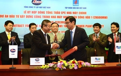 µÎ»êÁß°ø¾÷Àº º£Æ®³² ÇϳëÀÌ¿¡¼ º£Æ®³² Á¤ºÎ È²ÃæÇÏÀÌ(HOANG TRUNG HAI) ºÎ¼ö»ó, ¹ßÁÖóÀÎ º£Æ®³² ¼®À¯°ø»ç(PVN, Petro Vietnam) ÀÀ¿ì¿£ ²Ù¾ï Ä(NGUYEN QUOC KHANH) »çÀå, ±¹¿µ±â¾÷ ¸±¶ó¸¶(Lilama) ¸£ ¹Ý ¶Ñ¾ð (Le Van Tuan) »çÀå, µÎ»êÁß°ø¾÷ Á¤ÁöÅà ºÎȸÀå µîÀÌ Âü¼®ÇÑ °¡¿îµ¥ 1200MW±Þ(600MW¥ª2) ‘¼ÛÇÏ¿ì(Song Hau) 1’ ¼®ÅºÈ·Â¹ßÀü¼Ò °Ç¼³ °è¾àÀ» ü°áÇß´Ù°í 13ÀÏ ¹àÇû´Ù.