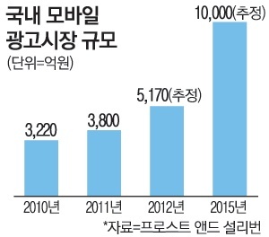 Àü ¼¼°è ¸ð¹ÙÀÏ ±¤°í½ÃÀå ±Ô¸ð´Â 2013³â 191¾ï9700¸¸ ´Þ·¯, 2014³â 426¾ï3100¸¸ ´Þ·¯·Î Ãß»êµÆÀ¸¸ç, ¿ÃÇØ Àü¸ÁÄ¡´Â 686¾ï9500¸¸ ´Þ·¯´Ù.¶Ç 2017³â¿¡´Â 1337¾ï4300¸¸ ´Þ·¯, 2018³â¿¡´Â 1666¾ï2800¸¸ ´Þ·¯¿¡ À̸¦ °ÍÀ¸·Î ¿¹»óµÈ´Ù.