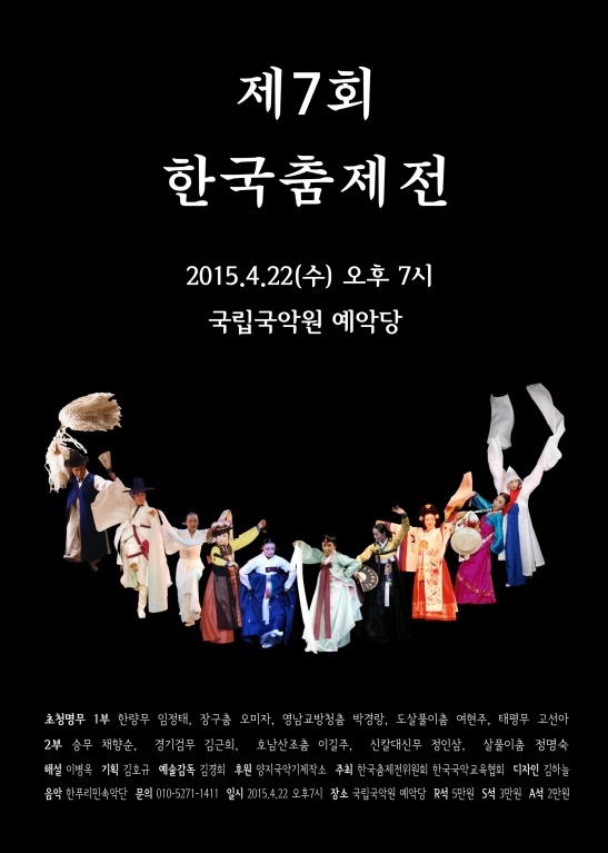 Çѱ¹¹«¿ëÀÇ ¿¹¼úÀû ÀüÅëÀ» ÇÑÀÚ¸®¿¡ ÃѸÁ¶óÇÑ ‘Á¦7ȸ Çѱ¹ÃãÁ¦Àü’Àº ÀÏ¹Ý ´ëÁߵ鿡°Ô Àͼ÷Áö ¾ÊÀº Çѱ¹¹«¿ë¿¡ ´ëÇÑ ³¸¼´ À½À» ¾ø¾Ö°í Á» ´õ °¡±õ°Ô ´Ù°¡¼±â À§ÇØ, ´ëÁߵ鿡°Ôµµ Àß ¾Ë·ÁÁø ½Â¹«¿Í »ìÇ®ÀÌ, À屸Ãã, ÅÂÆò¹« µî Çѱ¹À» ´ëÇ¥ÇÏ´Â ÀÛǰÀ» ¼±º¸¿© ÇÔ²² ±³°¨ÇÏ´Â °ø¿¬ ¸¶´çÀÌ µÉ °ÍÀ¸·Î ±â´ëµÈ´Ù.