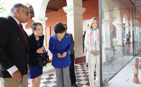 ¹Ú±ÙÇý ´ëÅë·ÉÀº 19ÀÏ ¿ÀÈÄ Æä·ç Àηù°í°íÇÐ ¿ª»ç¹Ú¹°°üÀ» ¹æ¹®ÇÏ¿©, ¡¸µð¾Æ³ª ¾Ë¹Ù·¹½º-Ä®µ¥·Ð (Diana Alvarez-Calderon)¡¹Æä·ç ¹®ÈÀå°ü°ú ¡¸±î¸£¸à ¶¼·¹»ç ±î¶ó½º²¿ (Carmen Teresa Carrasco)¡¹¹Ú¹°°üÀåÀÇ ¾È³»·Î À×Ä« ¹× ÀÌÀü ½Ã´ëÀÇ Æä·ç À¯¹°À» °ü¶÷Çß´Ù.