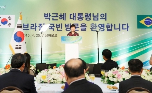 ¹Ú ´ëÅë·ÉÀº Àç¿Üµ¿Æ÷»çȸÀÇ ¸ð±¹¿¡ ´ëÇÑ ±â´ë¿Í Àںνɿ¡ ºÎÀÀ,‘Á¦2ÀÇ ÇѰÀÇ ±âÀû’À» ÅëÇØ ´ëÇѹα¹ÀÌ ¼¼°èÀÇ Áß½ÉÀ¸·Î ¿ì¶Ò ¼³ ¼ö ÀÖµµ·Ï ÃÖ¼±À» ´Ù Çϰڴٰí Çϸé¼, È¥½ÅÀÇ ³ë·ÂÀ¸·Î Å« ¼º°ú¸¦ °ÅµÎ°í ÀÖ´Â µ¿Æ÷µé°ú ¿ì¸® µ¿Æ÷µéÀÌ ºê¶óÁú »çȸ¿¡¼ ¼º°øÀûÀ¸·Î »Ñ¸® ³»¸± ¼ö ÀÖµµ·Ï ¹è·ÁÇØ ÁØ ºê¶óÁú Á¤ºÎ ¹× ±¹¹Î¿¡°Ô °¨»çÀÇ ¸»¾¸À» ÀüÇß´Ù.