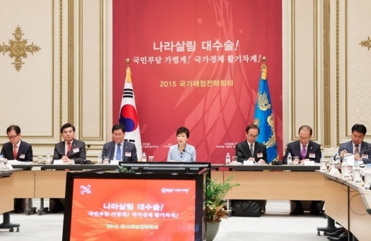 ÇÑÆí ¹Ú ´ëÅë·ÉÀº ȸÀÇ ½ÃÀÛ Àü ±¹°¡ÀçÁ¤Àü·«È¸ÀÇÀÇ Á߿伺À» °Á¶Çϸç "ÀçÁ¤Àü·« ¾øÀÌ ÀçÁ¤À» ¿î¿ëÇÑ´Ù´Â °ÍÀº 'µÀ´ëµµ ¾Æ´Ï ´Þ°í »ñ´ëµµ ¾øÀÌ' ¹Ù´å±æÀ» °¡·Á´Â °ÍÀ̳ª ¶È°°´Ù"°í ºñÀ¯Çß´Ù.
