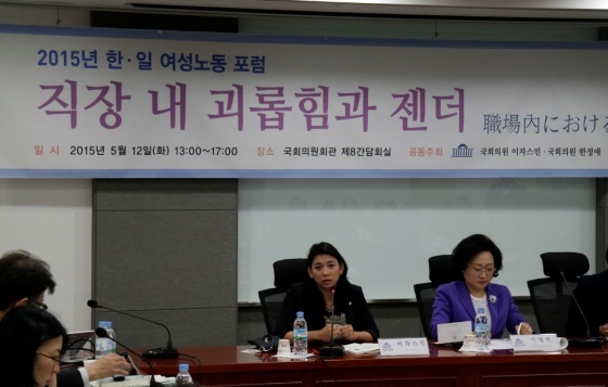 Á÷Àå ³» ±«·ÓÈû°ú Á¨´õ¸¦ ÁÖÁ¦·Î ÇÑ ‘2015³â ÇÑ·ÀÏ ¿©¼º³ëµ¿ Æ÷·³’ÀÌ »õ´©¸®´ç ÀÌÀÚ½º¹Î ÀÇ¿ø(±¹È¸ ȯ°æ³ëµ¿À§¿øÈ¸ ¹× ¿©¼º°¡Á·À§¿øÈ¸), »õÁ¤Ä¡¹ÎÁÖ¿¬ÇÕÀÇ ÇÑÁ¤¾Ö ÀÇ¿ø, Çѱ¹¿©¼ºÁ¤Ã¥¿¬±¸¿øÀÇ °øµ¿ÁÖÃÖ·Î 12ÀÏ ±¹È¸ÀÇ¿øÈ¸°ü Á¦8°£´ãȸ½Ç¿¡¼ ¼ºÈ²¸®¿¡ °³ÃֵƴÙ.