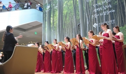 À̳¯ Á¤¿À °Ç±¹´ëº´¿ø ·Îºñ¿¡´Â ȯ¿ì¿Í º¸È£ÀÚ µî 50¿©¸íÀÌ µÑ·¯¾É¾Æ ‘°Ç±¹ÄܼƮÄâÀÌ¾î’ Çлý 30¸íÀÌ ÆîÄ¡´Â ¾Æ¸§´Ù¿î ¼º¾Ç °ø¿¬À» °¨»óÇß´Ù. 1½Ã°£ Á¤µµÀÇ ÂªÀº °ø¿¬ÀÌÁö¸¸ ·Îºñ ÁÖº¯Àº Áø·á¸¦ ±â´Ù¸®°Å³ª ¸¶Ä£ ȯ¿ì¿Í º¸È£ÀÚµé·Î ¹ß µðµô Æ´ ¾øÀÌ ºÕº³´Ù.