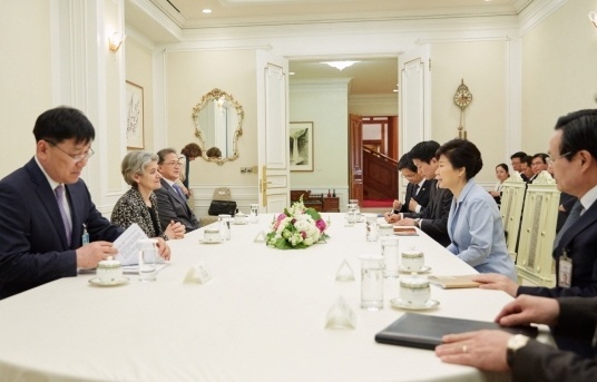 ¹Ú±ÙÇý ´ëÅë·ÉÀº 20ÀÏ 2015¼¼°è±³À°Æ÷·³ Âü¼®Â÷ ¹æÇÑÇÑ ¡¸À̸®³ª º¸ÄÚ¹Ù(Irina Bokova)¡¹ À¯³×½ºÄڻ繫ÃÑÀåÀ» Á¢°ßÇϰí, ÇÑ-À¯³×½ºÄÚ °ü°è Æò°¡, À¯³×½ºÄÚ°¡ ÁÖµµÇÏ´Â ±Û·Î¹ú ¾îÁ¨´õ Âü¿© È®´ë, ¼¼°è¹®ÈÀ¯»ê µîÀç ¹®Á¦¿¡ ´ëÇÑ ÀǰßÀ» ±³È¯Çß´Ù.