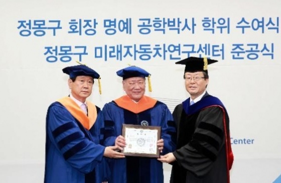 Á¤¸ù±¸ Çö´ëÀÚµ¿Â÷±×·ì ȸÀåÀÌ 29ÀÏ ¼¿ï ¼ºµ¿±¸ ÇѾç´ëÇб³ ¼¿ï Ä·ÆÛ½º¿¡¼ ÇѾç´ë°¡ ¼ö¿©ÇÏ´Â ¸í¿¹ °øÇйڻç ÇÐÀ§¸¦ ¹Þ¾Ò´Ù.