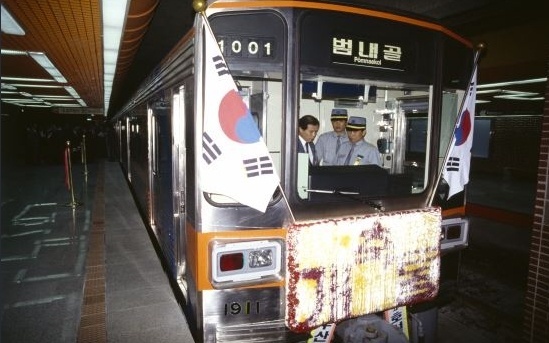 1974³â 8¿ù 15ÀÏ, 3³â 3°³¿ùÀÇ °ø»ç ³¡¿¡ ÁöÇÏöÀÌ Ã³À½À¸·Î µîÀåÇß´Ù. ù ¼±À» º¸ÀÎ Àüµ¿Â÷·®ÀÇ ³Ã·³¹æ½Ã¼³À̶ó°í´Â õÀå¿¡ ºÙÀº ¼±Ç³±â(‘74³â »çÁø)°¡ ÀüºÎ¿´´Ù. °³Åë Àü ÁöÇÏö ¿ª³»¸¦ ãÀº ¾î¸°ÀÌ(‘73³â »çÁø)µéÀÌ ½Å±âÇÑ µí ¼±·Î¿¡ ¹Ù¦ ºÙ¾î ±¸°æÇÏ´Â ¸ð½Àµµ ÀÌä·Ó´Ù.
