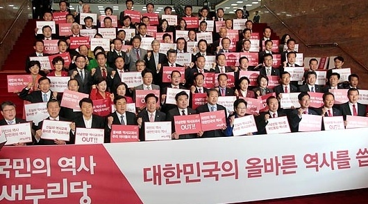 ¿ª»ç±³°ú¼ ±¹Á¤È¸¦ µÑ·¯½Î°í ¿©¾ßÀÇ ÀÔÀåÀÌ Ã·¿¹ÇÏ°Ô ´ë¸³Çϰí ÀÖ´Ù. ¿©´çÀº ¿Ã¹Ù¸¥ ¿ª»ç±³°ú¼ ÃßÁøÀ» ´ç·ÐÀ¸·Î äÅÃÇÑ ¹Ý¸é ¾ß´çÀº "»õ´©¸®´çÀº ÁÖ»çÆÄ"¶ó°í ºñ²¿¾Ò´Ù.