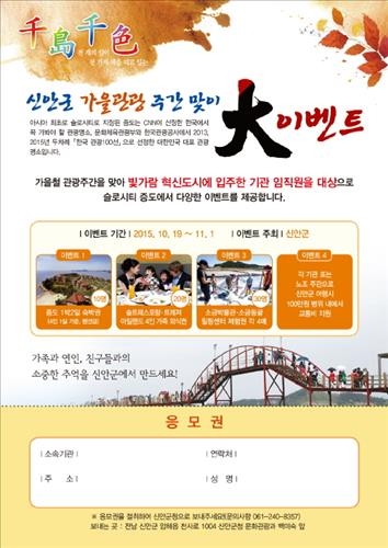 ±ºÀº °¡À» °ü±¤ÁÖ°£À» ¸Â¾Æ °ü±¤ ¾÷ü¸¦ ´ë»óÀ¸·Î Ä£Àý±³À°À» ½Ç½ÃÇÏ°í ¿©°´¼±Å͹̳Πµî ´ÙÁßÀÌ¿ë½Ã¼³¿¡ 2015 ½Å¾È°ü±¤»çÁø °ø¸ðÀü ÀÔ»óÀÛÀ» Àü½ÃÇÒ °èȹÀÌ´Ù. ¶ÇÇÑ ¼Ò±Ý¹Ú¹°°ü, ºÐÀç°ø¿ø, °¹¹ú»ýÅÂÀü½Ã°ü µî ÁÖ¿ä °ü±¤½Ã¼³ÀÇ ÀÔÀå·áµµ ÇÒÀÎÇÒ ¹æÄ§ÀÌ´Ù.