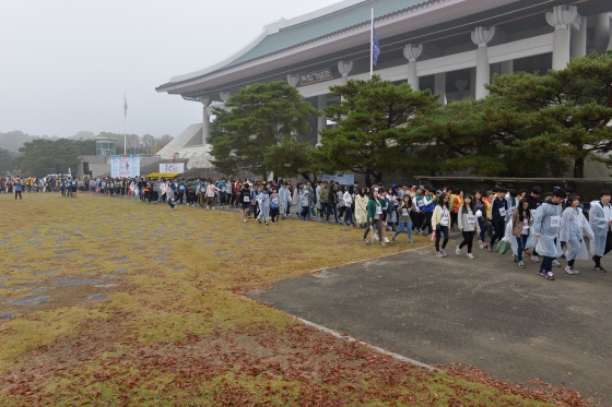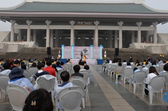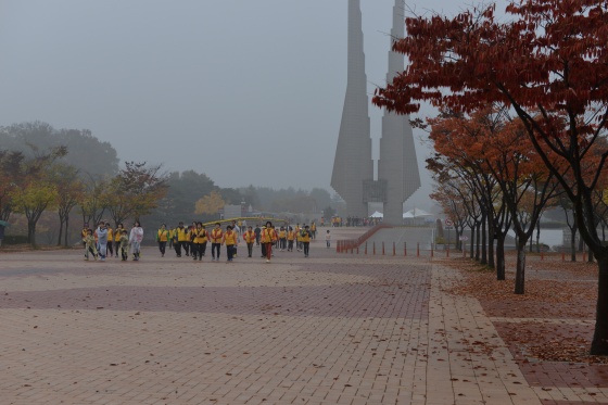 À̳¯ °È±â´ëȸ´Â µ¶¸³±â³ä°ü °Ü·¹ÀÇÁý ¾Õ¿¡¼ ±â³ä½ÄÀ» ÇÑ ÈÄ, ÀÌ¿ôÀ» »ý°¢ÇÏ¸ç ´Üdz³ª¹« ½£±æ(4.3km)À» °É¾ú´Ù.