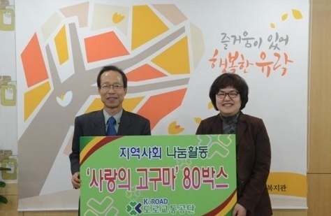µµ·Î±³Åë°ø´Ü(ÀÌ»çÀå ½Å¿ë¼±)ÀÌ 30ÀÏ(±Ý) Áö¿ª»çȸ µ¿¹Ý¼ºÀåÀÇ ¸ñÀûÀ¸·Î ÀڸŰῬ ¸¶À»¿¡¼ °í±¸¸¶¸¦ ±¸¸ÅÇϰí, À¯¶ôÁ¾ÇÕ»çȸº¹Áö°üÀ» ¹æ¹®ÇÏ¿© Áö¿ª»çȸ ¼Ò¿Ü°èÃþ¿¡°Ô Àü´ÞÇÏ´Â ‘»ç¶ûÀÇ °í±¸¸¶’ Àü´Þ Çà»ç¸¦ ½Ç½ÃÇÏ¿´´Ù.
