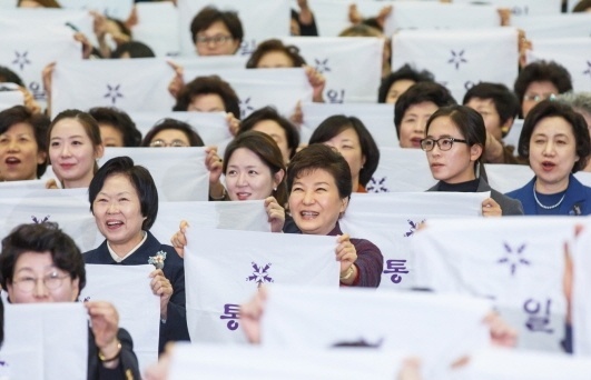 Áö³ 2013³â Á¦48ȸ Àü±¹¿©¼º´ëȸ¿¡ ÀÌ¾î µÎ ¹øÂ°·Î Âü¼®ÇÏ´Â ¹Ú±ÙÇý ´ëÅë·ÉÀº “Àü±¹¿©¼º´ëȸ°¡ ÃÖÃÊ·Î ÅëÀÏÀ» ÁÖÁ¦·Î ¿©¼ºµéÀÇ °áÀǸ¦ ¸ðÀº´Ù´Â °Í¿¡ ³²´Ù¸¥ °¨È¸¸¦ ´À³¤´Ù.”¸ç ”¿À´Ã Çà»ç¸¦ ±âÁ¡À¸·Î ÅëÀϰúÁ¤¿¡ ¿ì¸® ¿©¼ºÀÇ ¿ªÇÒÀÌ ´õ¿í Áõ´ëµÇ±æ ±â´ëÇÑ´Ù.”°í °Á¶Çß´Ù.