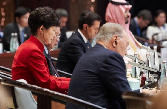 ¡à ¹Ú±ÙÇý ´ëÅë·ÉÀº Ç×Àú¿ì G20 Á¤»óȸÀÇ¿¡ Âü¼®ÇÏ¿©, Çõ½Å, Æ÷¿ëÀû ¼ºÀå, ±¸Á¶°³Çõ, ÀÚÀ¯¹«¿ª µî G20ÀÇ ÁÖ¿ä À̽´¿¡ ´ëÇÑ ³íÀÇ ÁÖµµ
