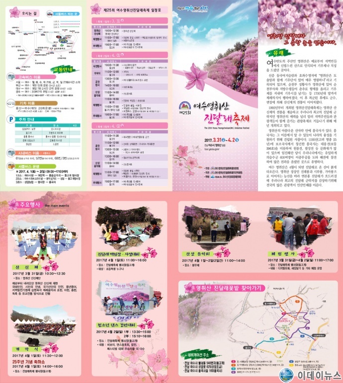 ³²µµÀÇ º½ »óÃá°´ÀÇ °¡½¿À» ¼³·¹À̰ÔÇÏ´Â ¡¸Á¦25ȸ Àü³² ¿©¼ö ¿µÃë»ê Áø´Þ·¡ ÃàÁ¦¡¹°¡ Àü³² ¿©¼ö½Ã ¿ù³»µ¿ 548¹øÁö µ¹°í°³ Çà»çÀå ÁÖ¹«´ë¿¡¼ 3. 31.(±Ý) ~ 4. 2.(ÀÏ)±îÁö 3Àϰ£ °³ÃֵȴÙ.