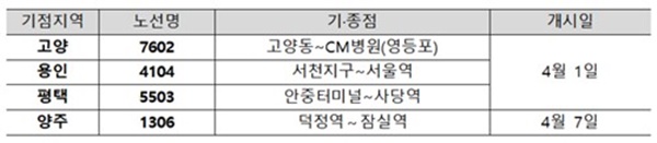 ÀÌµé ³ë¼±¿¡´Â °¢°¢ °æ±â °í¾ç, ¿ëÀÎ, ÆòÅÃ, ¾çÁÖ¿¡¼ ¼¿ï ¿µµîÆ÷, ¼¿ï¿ª, »ç´ç¿ª, Àá½Ç¿ªÀ» ÀÕ´Â ±¤¿ª¹ö½º°¡ ´Ù´Ï°Ô µÈ´Ù. °í¾ç¤ý¿ëÀΤýÆòÅà ³ë¼±Àº ¿À´Â 4¿ù 1ÀÏ, ¾çÁÖ ³ë¼±Àº ±×´Þ 7ÀϺÎÅÍ ¿îÇàÇÑ´Ù.