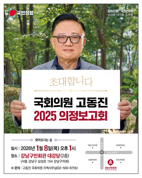 [¾ÆÀ¯°æÁ¦=Á¶Çö¿ì ±âÀÚ] ±¹È¸ ÇàÁ¤¾ÈÀüÀ§¿øÈ¸ ¼Ò¼Ó °íµ¿Áø ±¹È¸ÀÇ¿ø(±¹¹ÎÀÇÈû, ¼¿ï °³²±¸º´)Àº ¿À´Â 8ÀÏ ¿ÀÈÄ 1½Ã °³²±¸¹Îȸ°ü 2Ãþ ´ë°´ç¿¡¼ `2025 ÀÇÁ¤º¸°íȸ`¸¦ °³ÃÖÇÑ´Ù°í ¹àÇû´Ù.